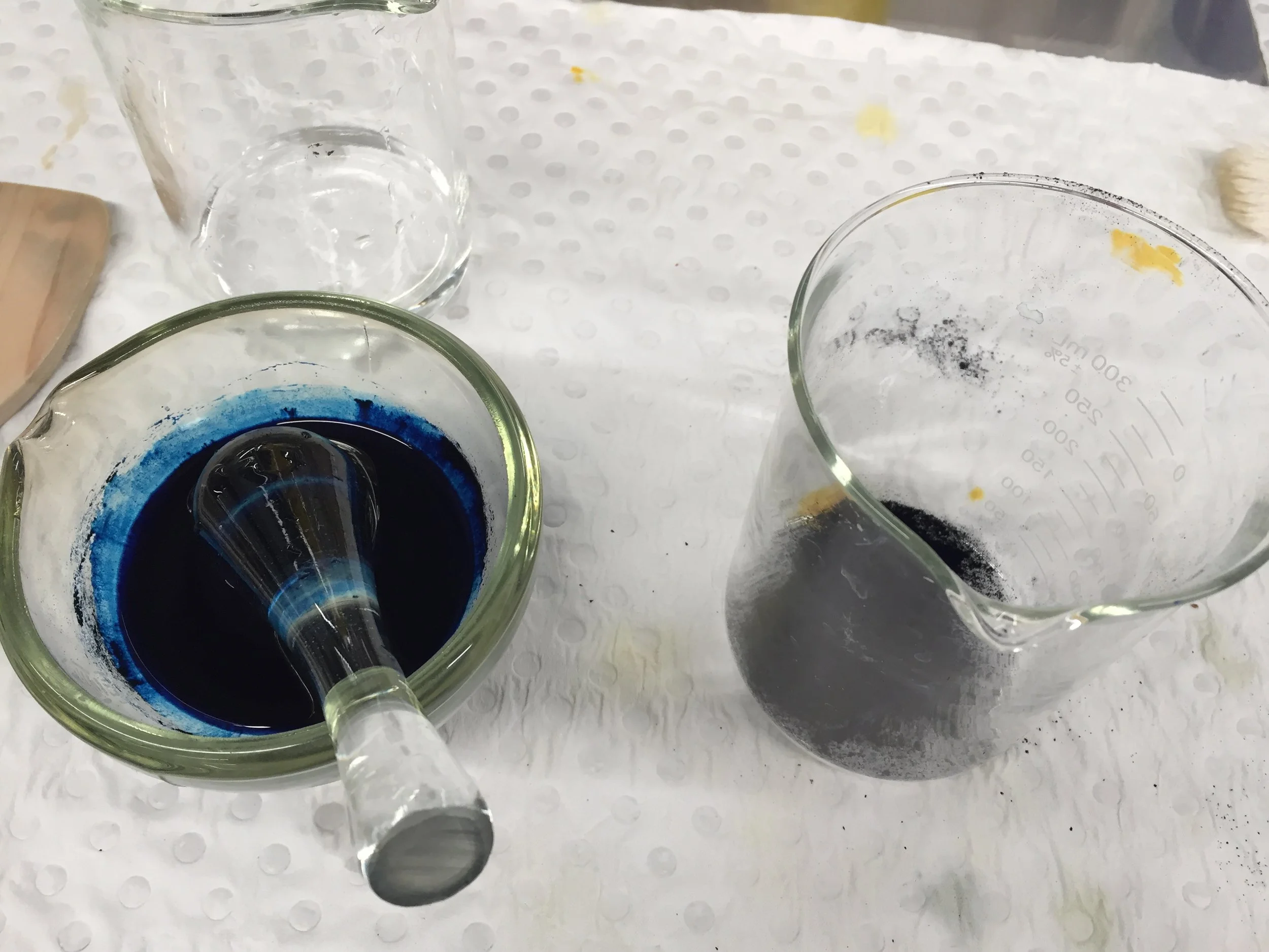 Two sources Resāleh-ye Ḵošnevīsī (1120 A.H./1708 A.D.) in 18th century, and Resāleh Dar Bayān-e Rang Kardan-e Kāğaḏ in 19th century describe how to make a blue paper by using indigo (nil). It seems the recipes describe the first technique advising to soak the indigo plant leaves in water and allowed them to ferment for a day in the vat. After the material is soaked in the dye-bath, it is dried in the air to oxidize the reduced indigo. Oxidization in the air fixes the indigotin and gives it its blue colour.